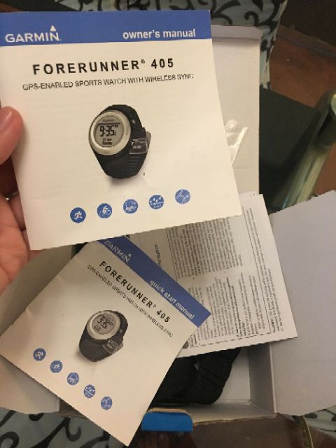 Power block to connect to usb charging cable. The manual quite extensively before getting started with the 405. Forerunner 405, usb ant stick, ac adapter, charging clip, owner's manual, . Garmin forerunner 405 troubleshooting, repair, and service manuals. A bunch of manuals and paper stuff.